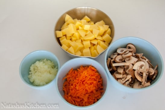پیاز و هویج رو از ظرف خارج می کنیم و در همون ظرف قارچها رو با یکی دو قاشق روغن زیتون سرخ می کنیم: